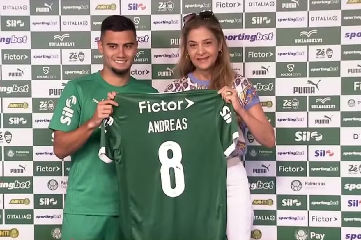 De volta da seleção brasileira, {PLAYER_LINK|370888|Andreas Pereira}, enfim, foi apresentado como reforço do {TEAM_LINK|2248|Palmeiras}. Contratado mês passado junto ao {TEAM_LINK|83|Fulham}, da Inglaterra, o meia justificou a escolha pelo Verdão.
