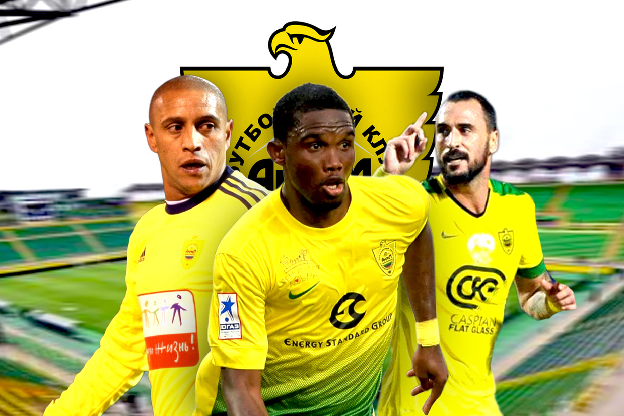 Samuel Eto’o, {DIRECTOR_LINK|4709|Roberto Carlos}, {PLAYER_LINK|9635|Yuri Zhirkov}, {PLAYER_LINK|17063|Lassana Diarra} e {PLAYER_LINK|31461|Willian}. A megalomania de Suleyman Kerimov, dono do {TEAM_LINK|10766|FK Anzhi}, fica perfeitamente espelhada pela dimensão histórica destes nomes. O atacante camaronês e o lateral brasileiro, numa vitrine à parte, eram absolutamente estratosféricos, ainda que o ex-jogador da seleção brasileira já estivesse em reta final da carreira.