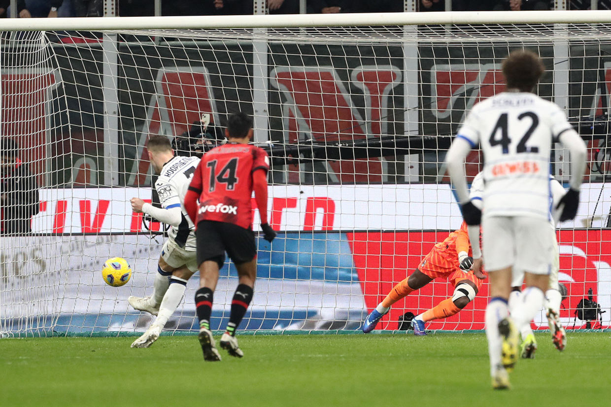 Aos 14, Holm invadiu a área, levando para a linha de fundo e terminou derrubado por Jiménez. O árbitro não hesitou em marcar pênalti. Koopmeiners cobrou com categoria, tirou do alcance de Maignan e colocou a Atalanta em vantagem.