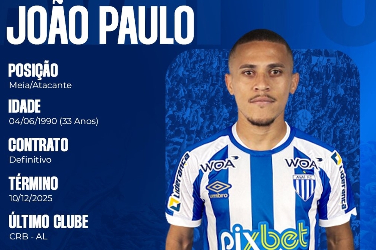 De olho na próxima temporada, o Avaí anunciou, na tarde desta quinta-feira, mais um reforço para seu elenco. Desta vez, um velho conhecido do torcedor avaiano. Trata-se do meia-atacante João Paulo, de 33 anos, que assinou contrato até o fim de 2025.