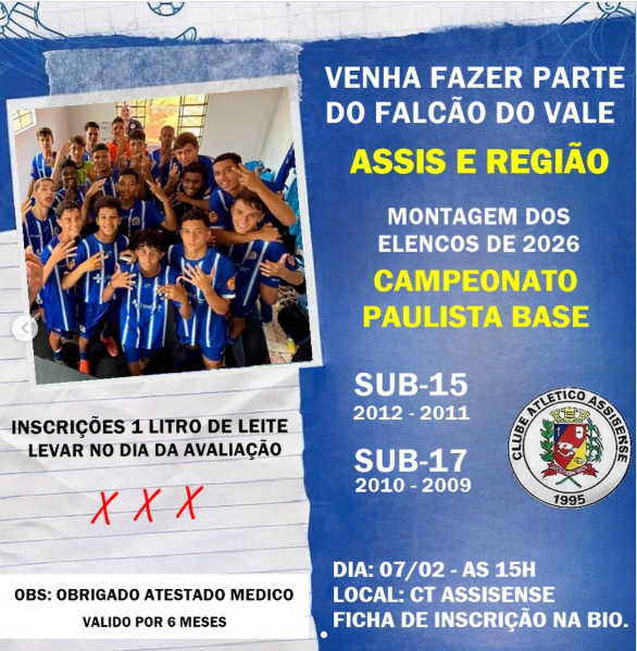 Fala galera que curte o FP \o/, CA Assisense divulgou as informações das suas avaliações de 2026! Confiram tudo a seguir: