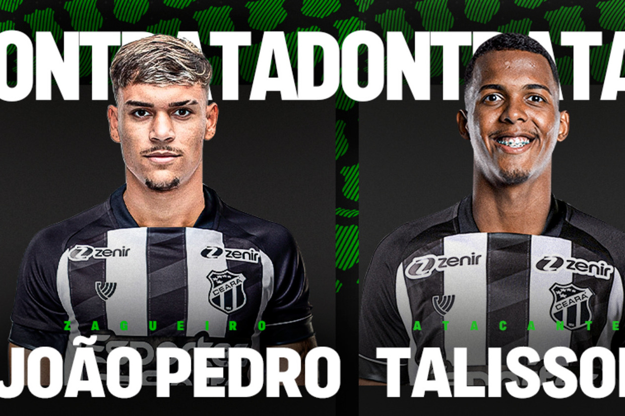 O Ceará anunciou a contratação de dois jogadores para a sequência da temporada. Talisson, que estava no Red Bull Bragantino, e João Pedro, da base do Corinthians, reforçam o clube em 2024.