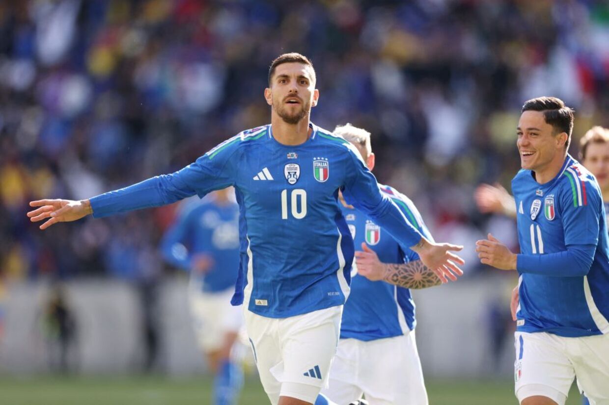 A Itália abriu o placar do jogo com um golaço logo no início. Aos dois minutos, Dimarco cobrou falta na barreira, mas Pellegrini ficou com a sobra e soltou uma pancada para fazer um belo gol.