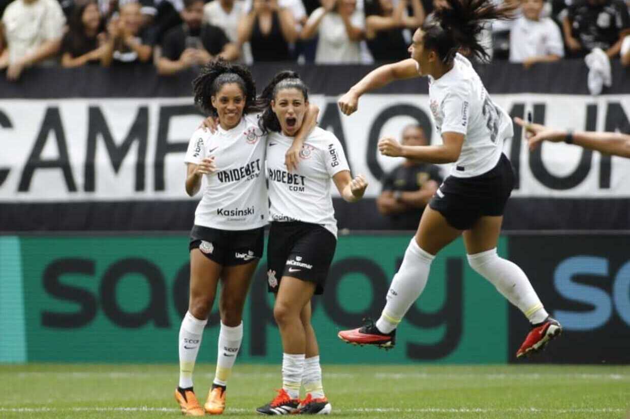 Na sequência, as Brabas do Timão iniciaram uma blitz e quase marcaram com Duda Sampaio, que finalizou firme da entrada da área, com desvio, e viu a bola sair com muito perigo. Pouco depois, Gabi Portilho também arriscou de fora e tirou o “uh” da torcida alvinegra.
