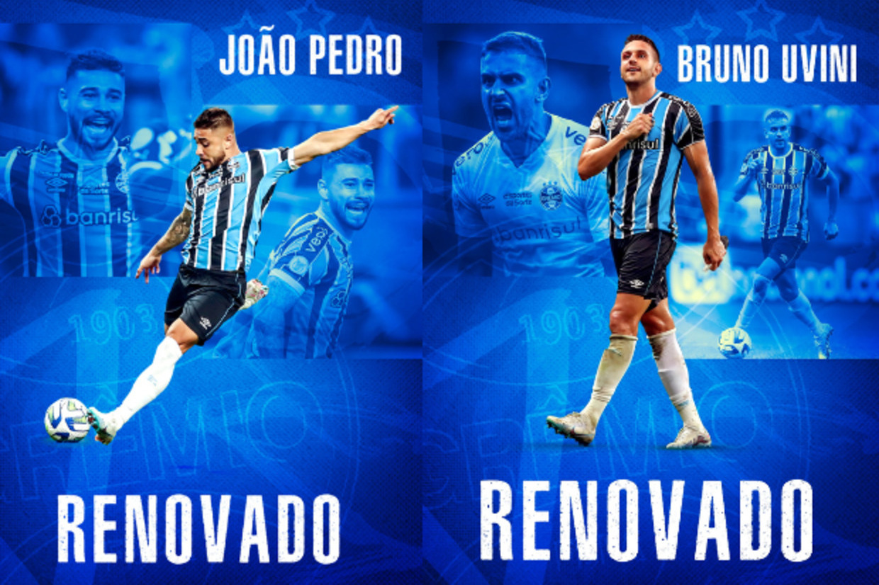 O Grêmio apresentou suas primeiras renovações para a próxima temporada. O Tricolor anunciou a ampliação de vínculo com o lateral-direito João Pedro e com o zagueiro Bruno Uvini. Ambos os defensores assinaram por mais duas temporada.