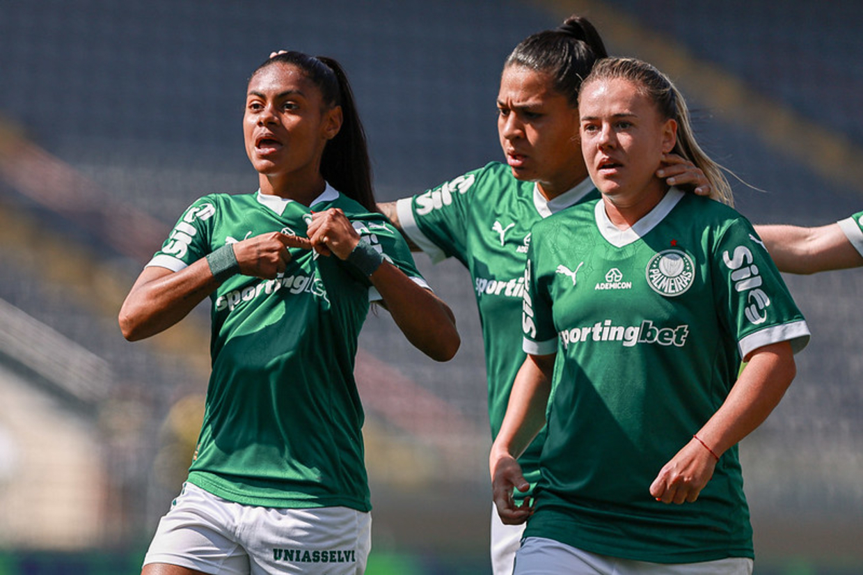 Em uma manhã de golaços em Barueri, o Palmeiras contou com pinturas de {PLAYER_LINK|761344|Tainá Maranhão} e Brena e um gol da artilheira Amanda Gutierres já nos acréscimos para vencer o Flamengo, por 3 a 0, e se garantir nas semifinais do Brasileirão Feminino.