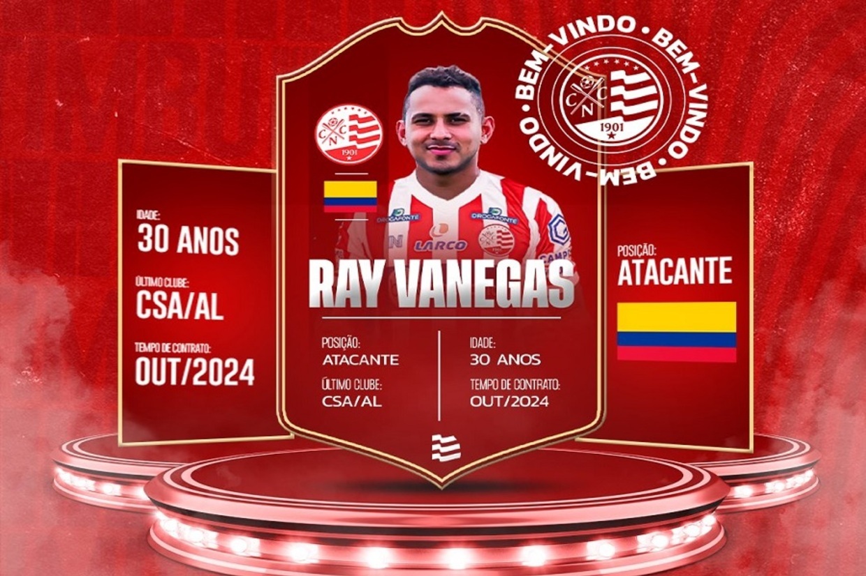 O Náutico anunciou na noite desta segunda-feira, 12, a contratação do atacante colombiano Ray Vanegas. O jogador de 30 anos assinou contrato válido até outubro de 2024 e chega ao Timbu para uma temporada que tem como competições o Campeonato Pernambucano, Copa do Nordeste, Copa do Brasil e Série C.