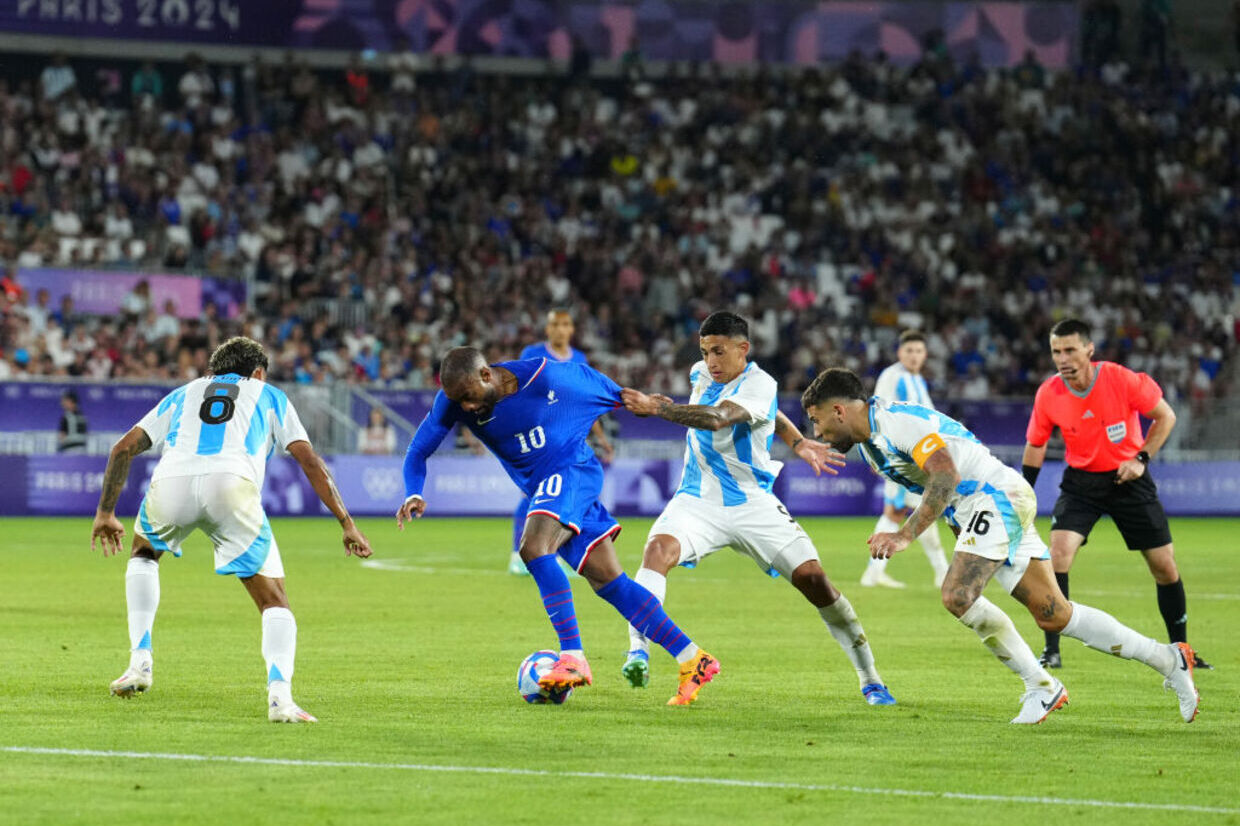 A França começou de forma vertical, aproveitou o apoio da torcida e buscou um gol logo no início. Aos quatro minutos, Olise cobrou escanteio fechado, Mateta entrou livre e desviou nas redes.