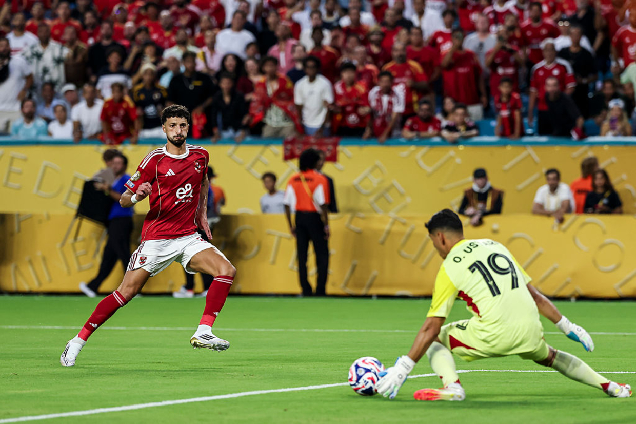 {TEAM_LINK|2413|Al Ahly} e {TEAM_LINK|231636|Inter Miami} fizeram um jogo movimentado no {STADIUM_LINK|12803|Hard Rock Stadium}. Foi uma abertura de {EDITION_LINK|186041|Mundial de Clubes} dos goleiros: Ustari brilhou no primeiro tempo, e pegou até pênalti; {PLAYER_LINK|229785|El Shenawy} foi protagonista na segunda etapa, e contou ainda com o travessão para parar {PLAYER_LINK|10592|Lionel Messi}. 0 a 0 foi o placar final.