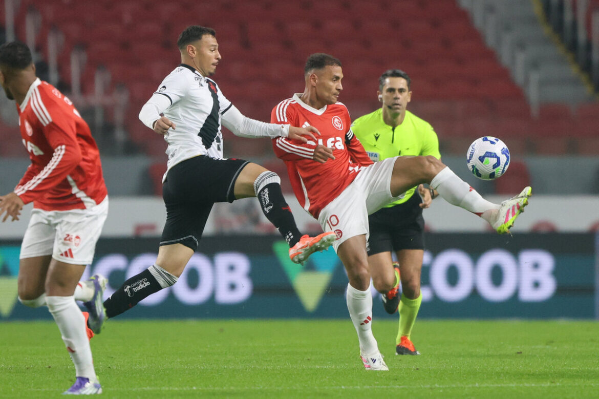 Em um duelo aberto, equilibrado e repleto de oportunidade para os dois lados, {TEAM_LINK|2245|Internacional} e {TEAM_LINK|2258|Vasco} ficaram no empate em 1 a 1 no Beira-Rio. O time carioca começou melhor a partida e abriu o placar no primeiro tempo, mas o Colorado aproveitou uma expulsão de {PLAYER_LINK|195909|Léo Jardim} para arrancar a igualdade nos acréscimos.