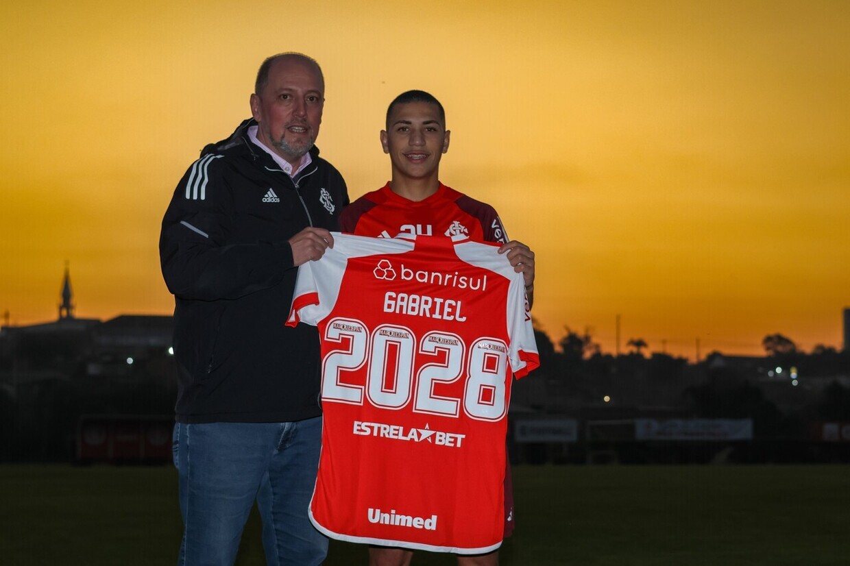 Talento precoce do Celeiro de Ases, Gabriel Carvalho prolongou seu vínculo com o Internacional. O jovem atacante assinou sua renovação de contrato com o clube gaúcho até 2028, com multa rescisória de 60 milhões de euros, cerca de R$ 363,6 milhões.