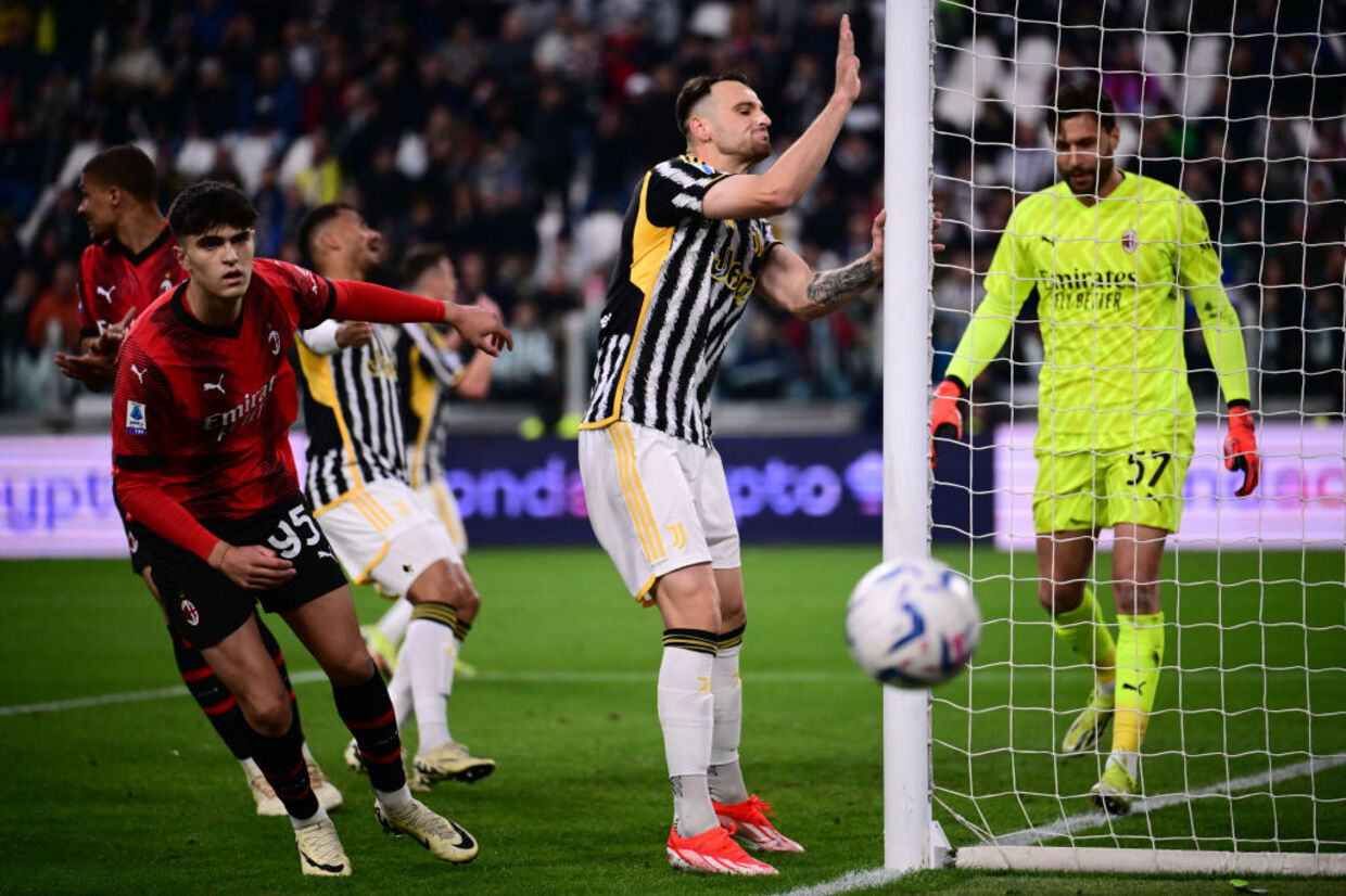 A Velha Senhora contava com uma falta de compactação da zaga rossonera pelo lado esquerdo para levar perigo. Rafael Leão não acompanhava Gatti por ali. Percebendo isso, Locatelli mandou passe vertical na saída de jogo para o número 4, que avançou e arriscou de fora. Por cima do alvo.