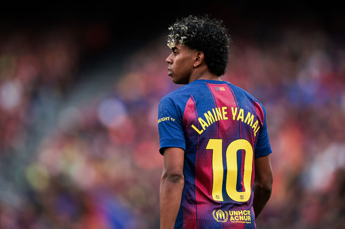 Titular no dérbi deste sábado contra o {TEAM_LINK|43|Espanyol}, no {STADIUM_LINK|62|Camp Nou}, {PLAYER_LINK|1013243|Lamine Yamal} se tornou o jogador mais jovem a completar 100 partidas pelo {COMPETITION_LINK|5|Campeonato Espanhol}.