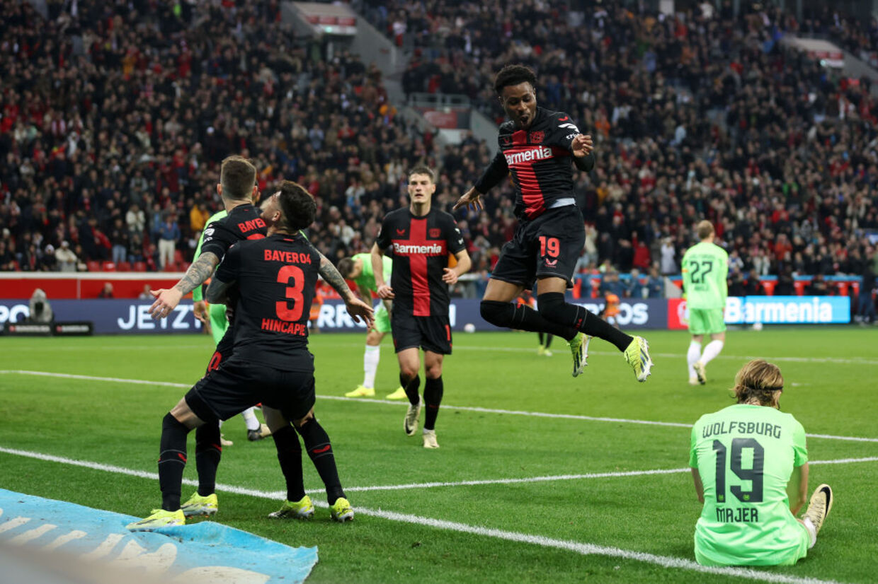 O Bayer Leverkusen segue imparável rumo ao título inédito da Bundesliga. Neste domingo, os Farmacêuticos receberam o Wolfsburg e, com o domínio habitual (atenuado pela expulsão Jenz no primeiro tempo), venceu por 2 a 0.