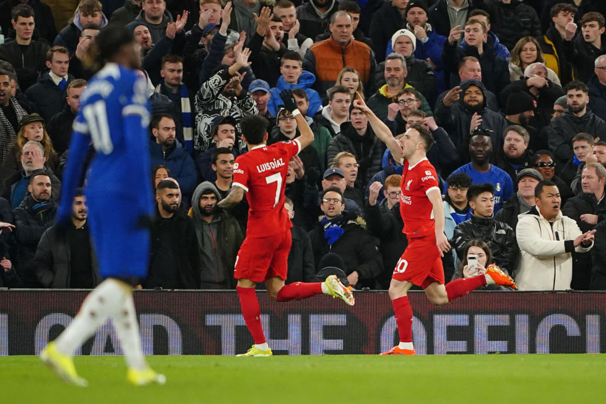 O Liverpool foi fatal no contra-ataque. Aos 39, Luis Diaz abriu espaço no meio e abriu na direita para o garoto Conor Bradley, que soltou uma pancada no cantinho e marcou seu primeiro gol como profissional. Aos 44, Jota recebeu na pequena área e foi pisado por Badiashile e o pênalti foi marcado. Aos 47, Núñez foi para a cobrança, mas acertou a trave. Nos acréscimos, a primeira finalização dos Blues, com Enzo Fernández arriscando de longe para Alisson encaixar.