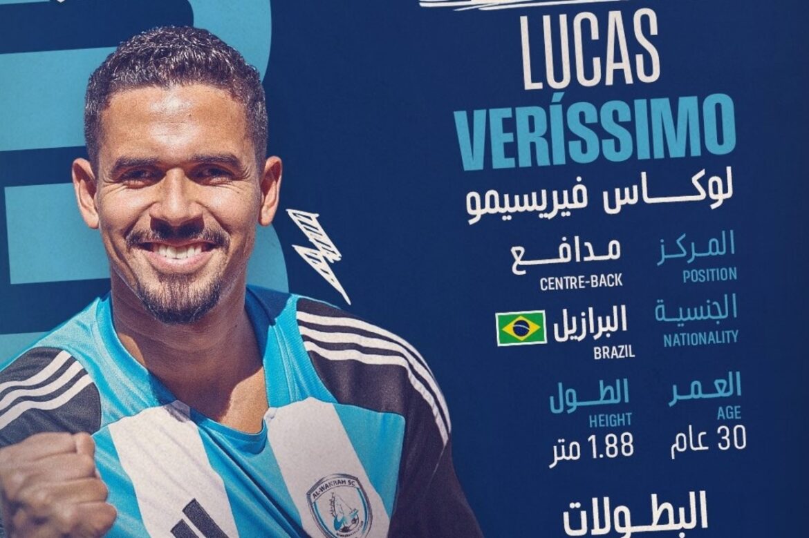 {PLAYER_LINK|262050|Desejado} no mercado brasileiro, {PLAYER_LINK|491981|Lucas Veríssimo} definiu a sua permanência no futebol árabe e mudou de casa no Catar. Nesta segunda-feira (21), o zagueiro foi anunciado como novo reforço do {TEAM_LINK|8488|Al Wakrah}.