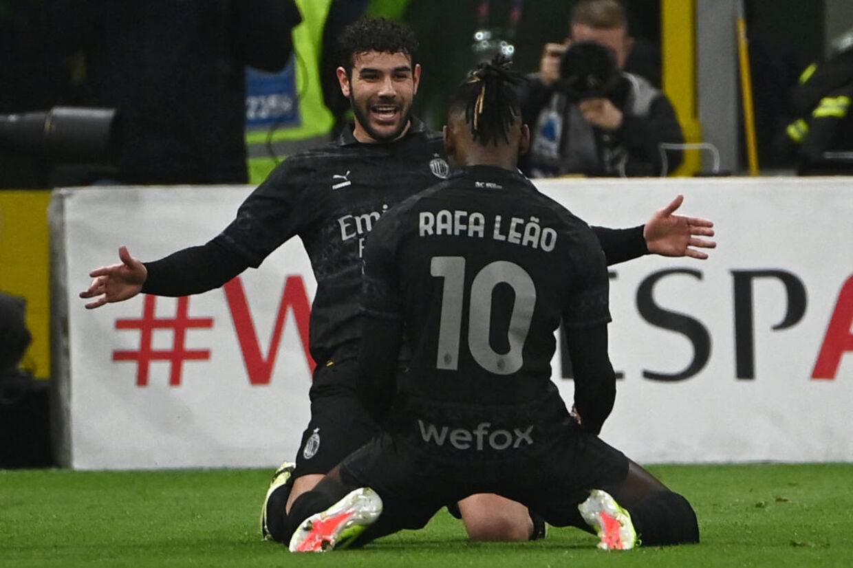 Na sequência, o duelo ficou morno em Milão, mas o time rossonero soube aproveitar a primeira grande chance criada para inaugurar o placar. Aos 25, após linda triangulação, Rafael Leão recebeu de Giroud e descolou um lançamento milimétrico para Theo Hernández, que invadiu a área e tocou na saída do goleiro: 1 a 0.
