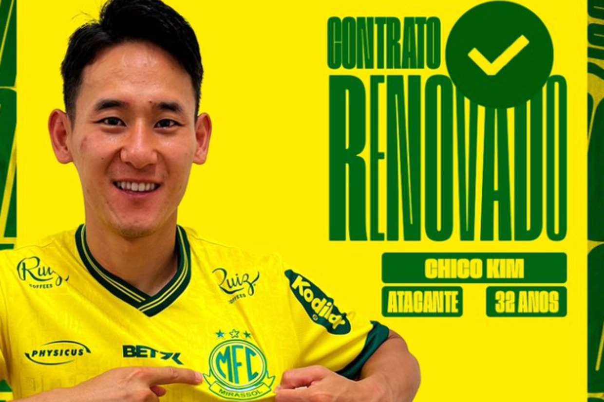 Um dos destaques do Mirassol em 2023 vai seguir no clube por mais uma temporada. O meia-atacante Chico Kim renovou contrato para o novo ano com o Leão.