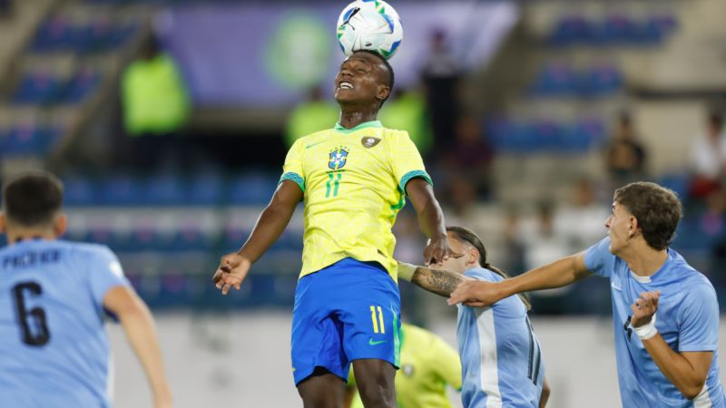 Rayan deu bastante trabalho à zaga do país vizinho. Aos 4 minutos, chutou forte de esquerda, de fora da área, assustando o goleiro do Uruguai. Aos 14, Rayan entrou pela direita e encheu o pé: a bola bateu na trave. Aos 18, Gustavo Pardo avançou pela esquerda, limpou a jogada e quase marcou.