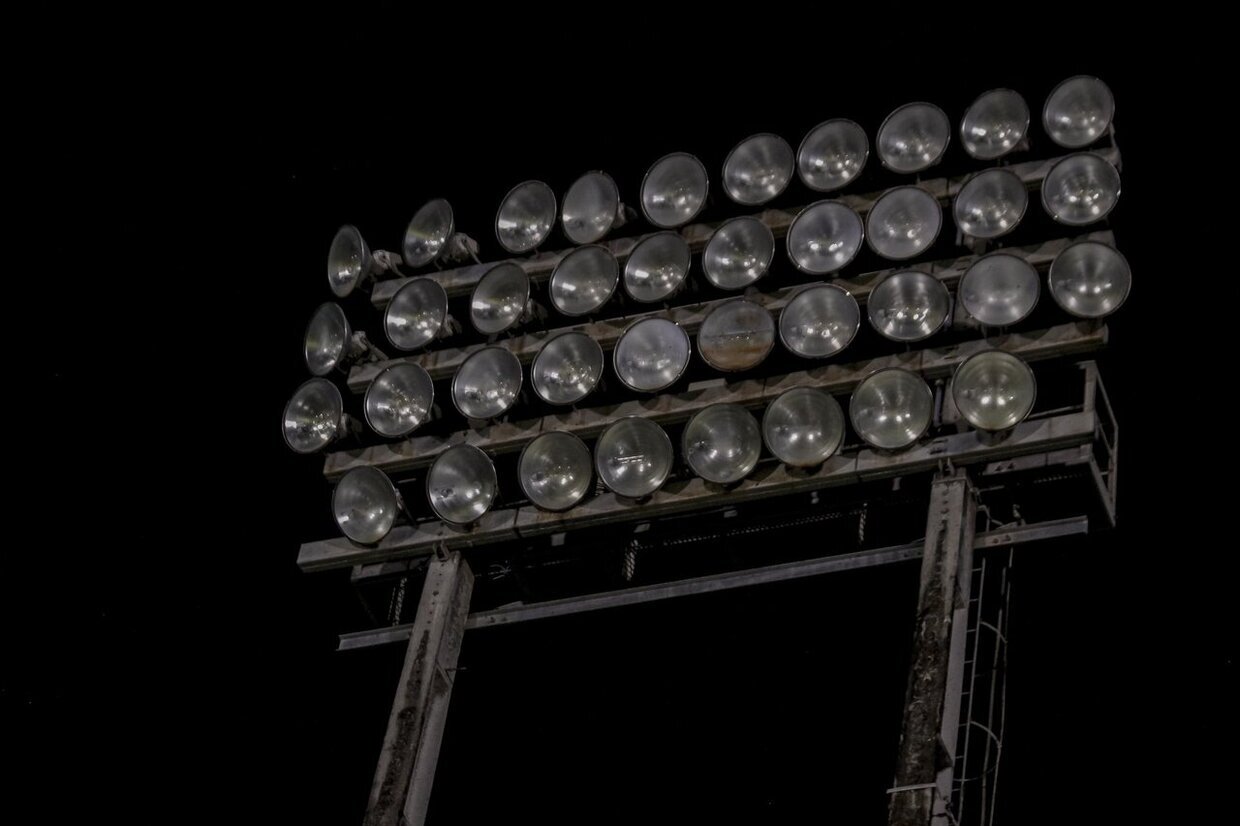 Os refletores chegaram a se acender novamente, mas quando o árbitro apitou o reinício da partida houve nova queda de energia na torre de iluminação.
