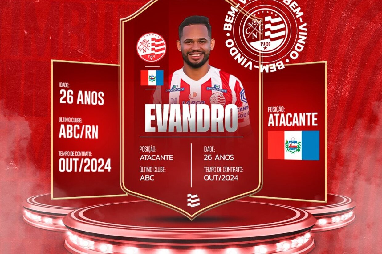 Firme na montagem de elenco para 2024, o Náutico anunciou, nesta terça-feira, a primeira novidade para o setor ofensivo. Trata-se do atacante Evandro, de 26 anos, que assinou com o Timbu até o fim de outubro do ano que vem.