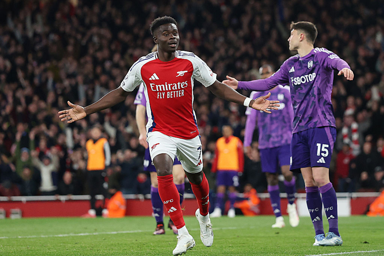 Após mais de três meses fora dos gramados, {PLAYER_LINK|641146|Bukayo Saka} precisou de sete minutos para marcar em mais uma vitória do Arsenal. Pela 30ª rodada da {COMPETITION_LINK|4|Premier League}, os Gunners venceram o derby londrino contra o Fulham por 2 a 1 e defenderam a vice-liderança.