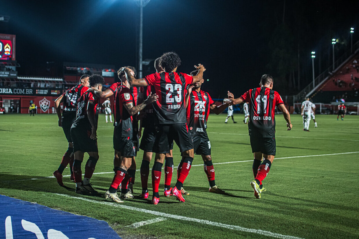 O Vitória aproveitou uma falha do goleiro João Soares no primeiro tempo, abriu vantagem em cima de um rival desestabilizado e venceu o Ferroviário, por 2 a 1, no Barradão, para assumir a liderança provisória do grupo na Copa do Nordeste.